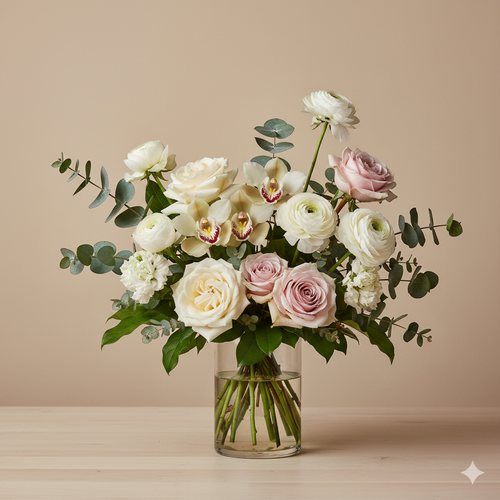 every arragnemetn is thoughtfully composed - layers of texture, harmonious tones, and carefully selected blooms, each chosen to evoke emotion and elevate the everyday.